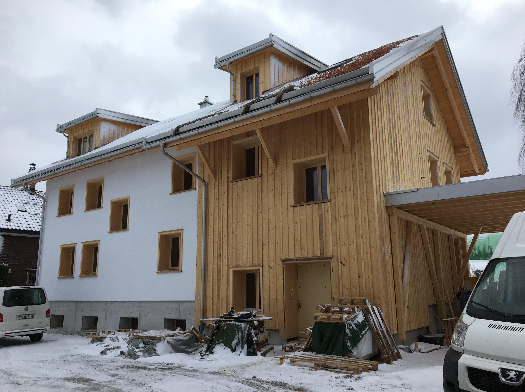 Hier wird 3.2 Kubikmeter Holz verbaut. Diese Holzmenge bindet 3.2 Tonnen CO2 Das ist genial.
